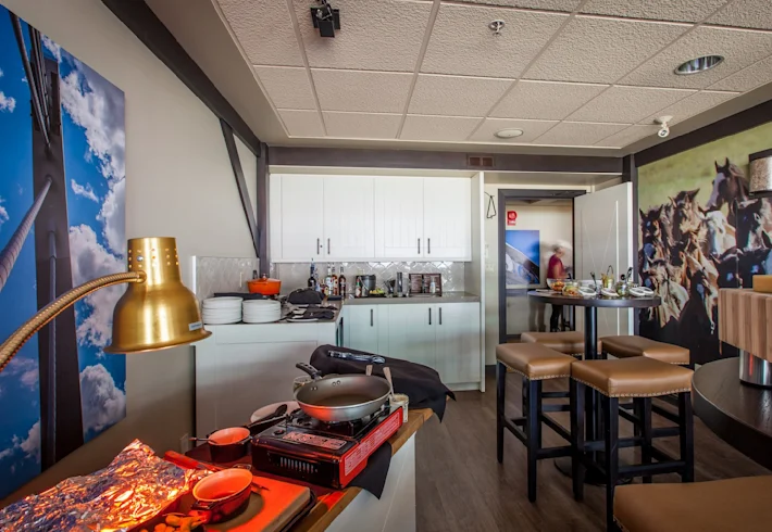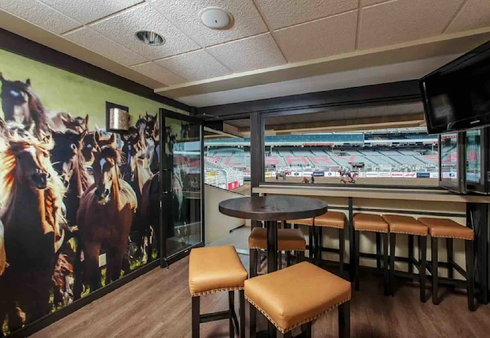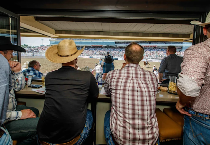 Behind the chutes and in the centre of the action, Infield Suites are where the in-crowd gathers for the Stampede Rodeo, or the Rangeland Derby presented by Play Alberta & ENMAX Relay Races.