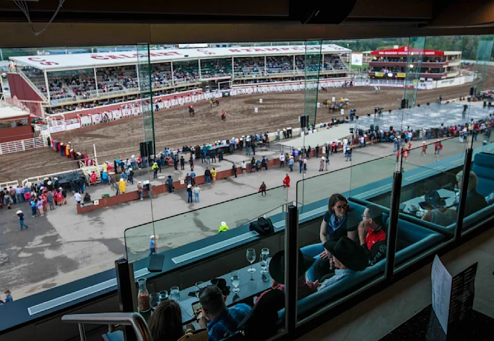 Guests are surrounded by modern western culture with a comfortable, cool vibe to take in the Stampede Rodeo or Evening Show, featuring the Rangeland Derby presented by Play Alberta, ENMAX Relay Races & Grandstand Show presented by Freedom Mobile.